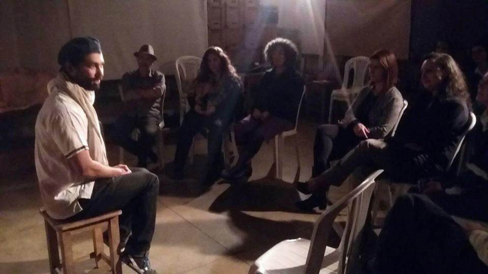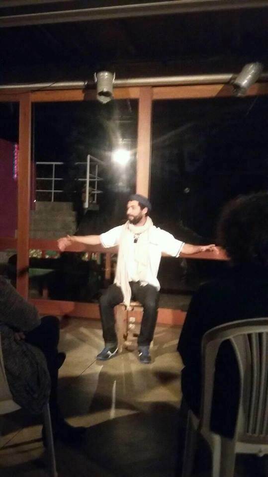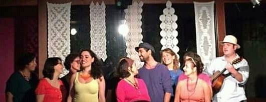 - Cantoria ao final da apresentação. Participação especial do músico Guilherme Maximiano. Noite de apresentação: Pra que o mundo não acabe! Contos de Pedro Malazarte. Dezembro de 2016.