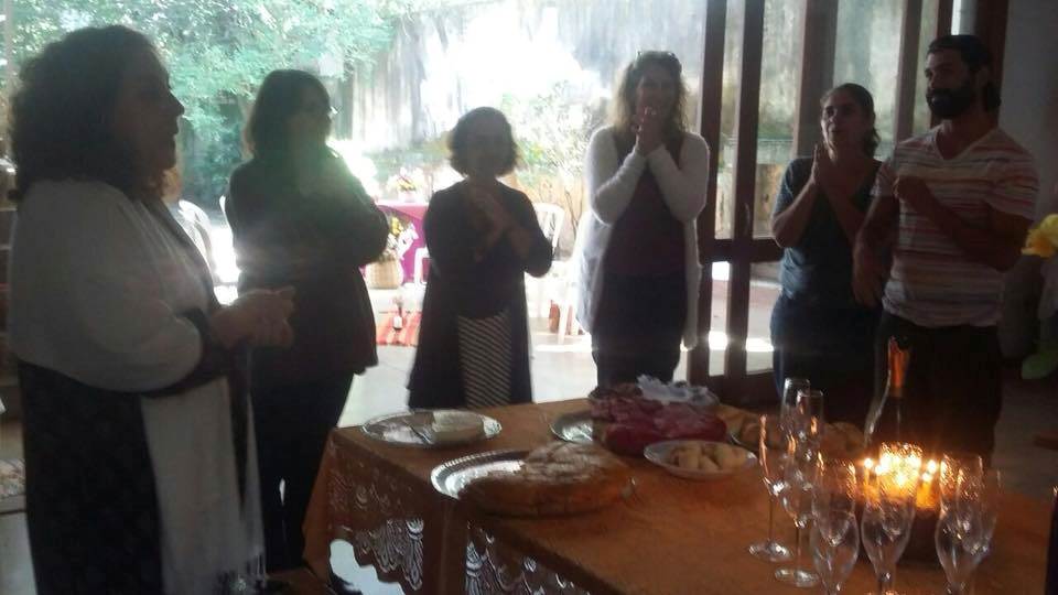 - Hora dos parabéns. Dia de estudo e comemoração surpresa do aniversário de Regina Machado. Abril de 2018.