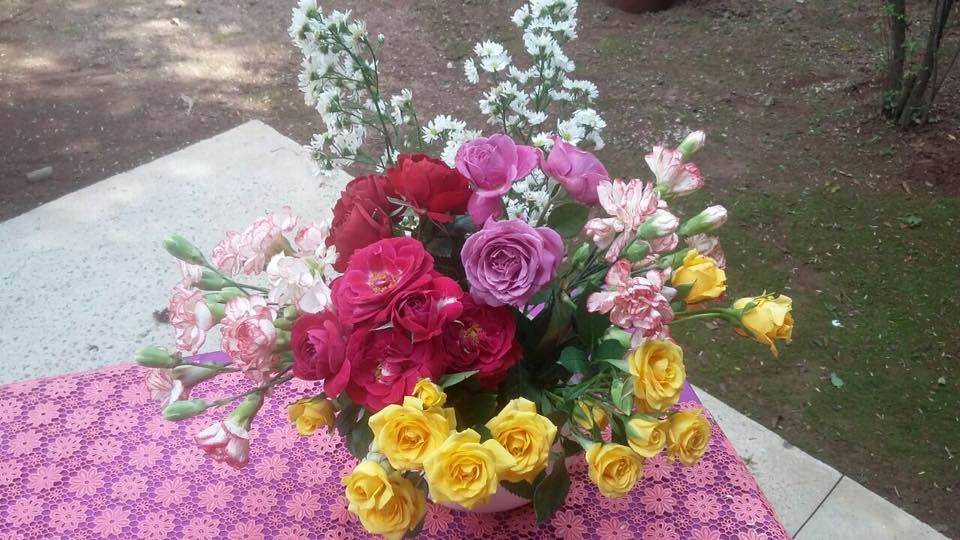 - Vaso de flores para compor a mesa. Dia de estudo e comemoração surpresa do aniversário de Regina Machado. Abril de 2018.