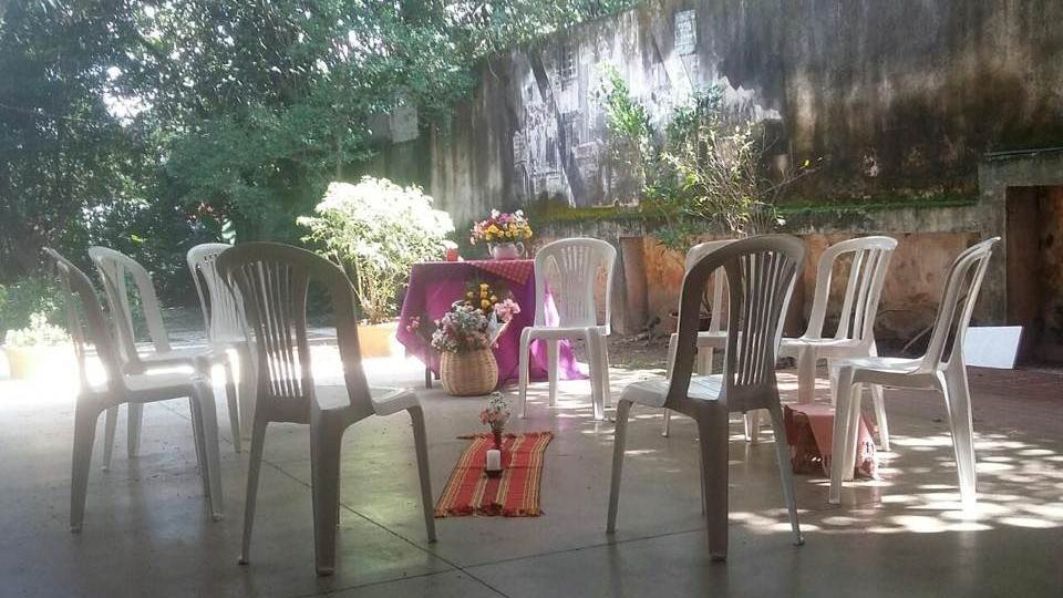 - Cadeiras em roda à espera dos contadores e das histórias-presentes que seriam oferecidas para a aniversariante. Dia de estudo e comemoração surpresa do aniversário de Regina Machado. Abril de 2018.