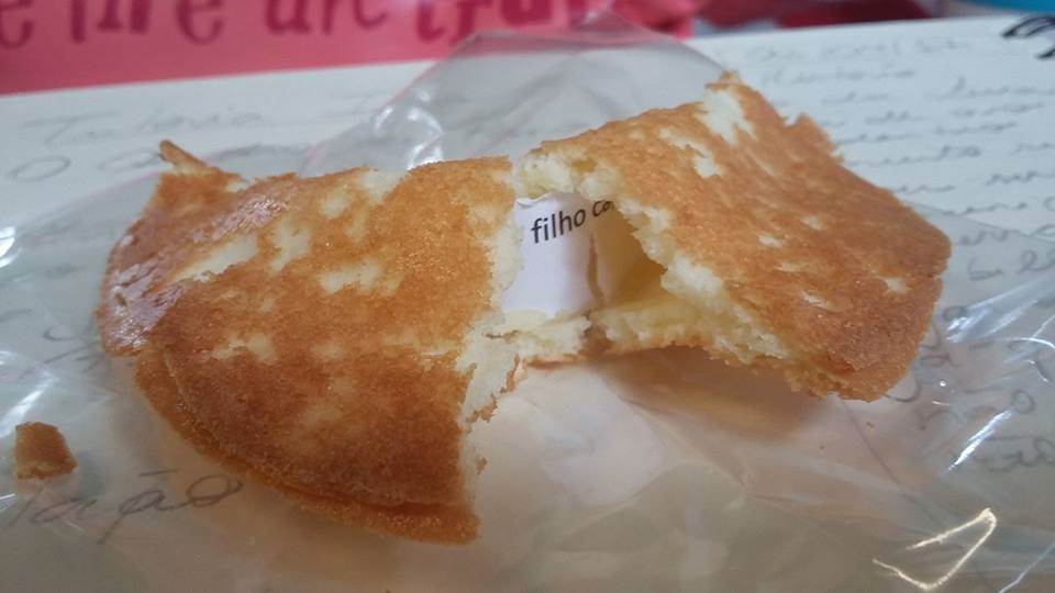- Biscoito da sorte feito pela própria Inês, cada participante do grupo recebeu um biscoito que continha uma parte da história. Dia de estudo com tutoria de Inês Breccio. Tema: Conto Chinês e suas partes. Junho de 2016.
