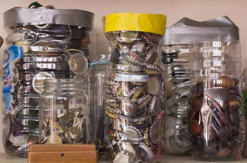 - Nestas imagens, é possível observar de perto exemplos de materiais utilizados para confecção de instrumentos, tais como cápsulas de café, tampinhas de garrafas de metal, suportes de durex coloridos, cordas e fitas etc. Trabalhando com a criação e construção de instrumentos e materiais sonoros há mais de trinta anos, observo a mudança dos materiais disponíveis, das chamadas sucatas, ao longo desse percurso. Por isso, é fundamental observar o entorno e manter-se alerta para aproveitar todo e qualquer material que possa ser transformado em um instrumento musical, muitas vezes criados por nós ou, o que é ainda melhor, pelos alunos e pelas alunas com os quais trabalhamos!