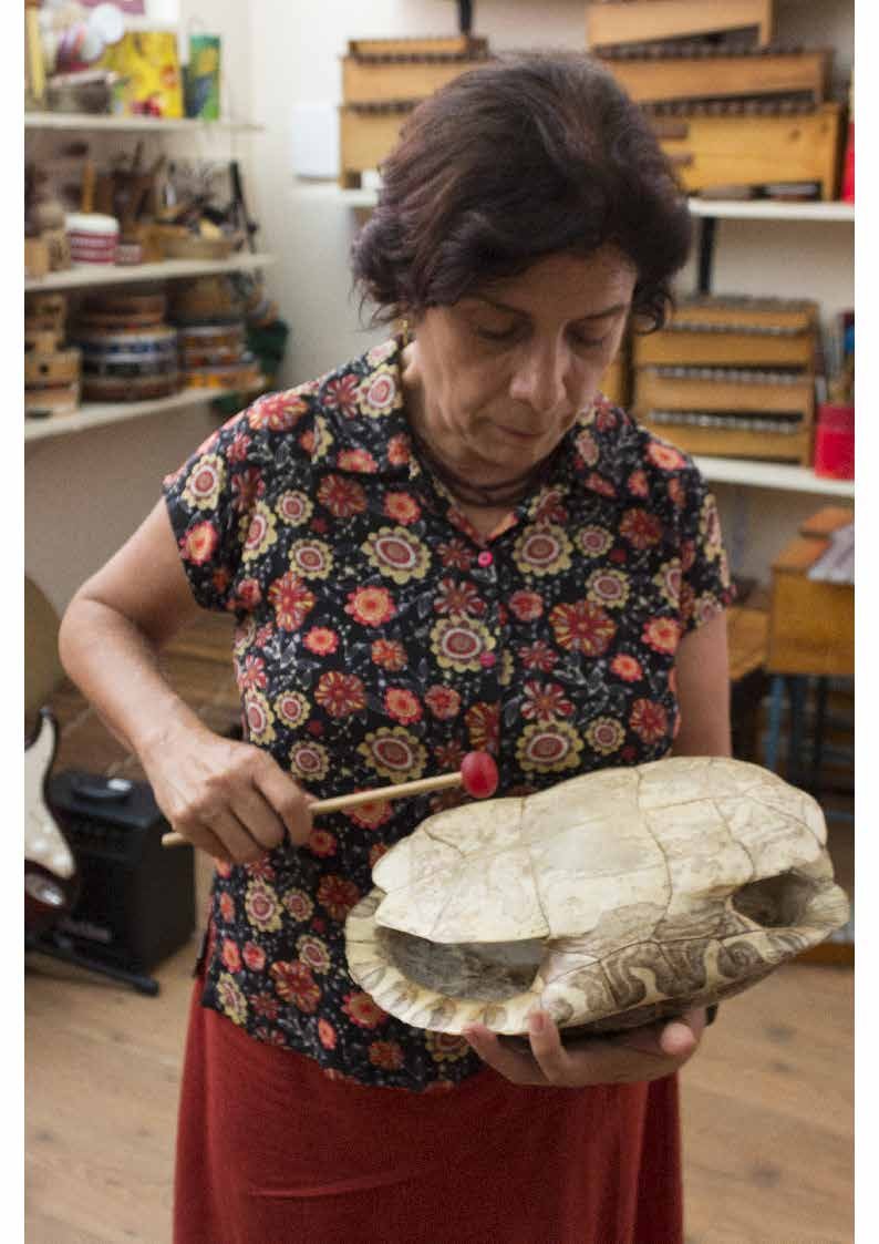 - A queixada é um instrumento latino-americano, muito presente no Peru. É um raspador, próximo a um reco-reco e, hoje em dia, já difícil de encontrar. Quando eu apresento esse instrumento às crianças, elas se espantam e costumam perguntar: “mataram o burro para fazer um instrumento?” Eu aproveito para abordar o assunto, explicando que os instrumentos muito antigos eram feitos com materiais da natureza, desde troncos e galhos de árvores, sementes e tubos de bambu até peles e ossos de animais. No caso da queixada, a arcada dentária de um animal é aproveitada. Então, explico às crianças que já existe um instrumento chamado de queixada ou, em inglês, vibraslapt, que procura se aproximar do timbre da queixada de osso. Da mesma maneira, peles de animais antes comuns nos tambores estão sendo substituídas pelo nylon ou outros materiais sintéticos.
