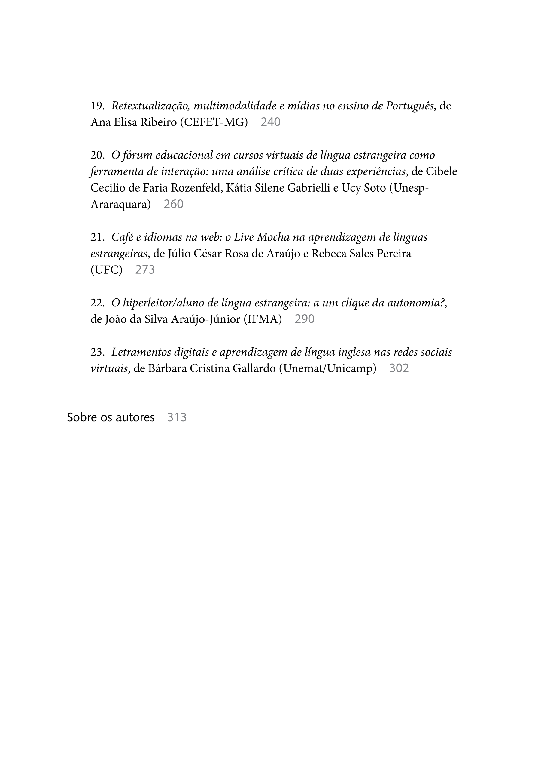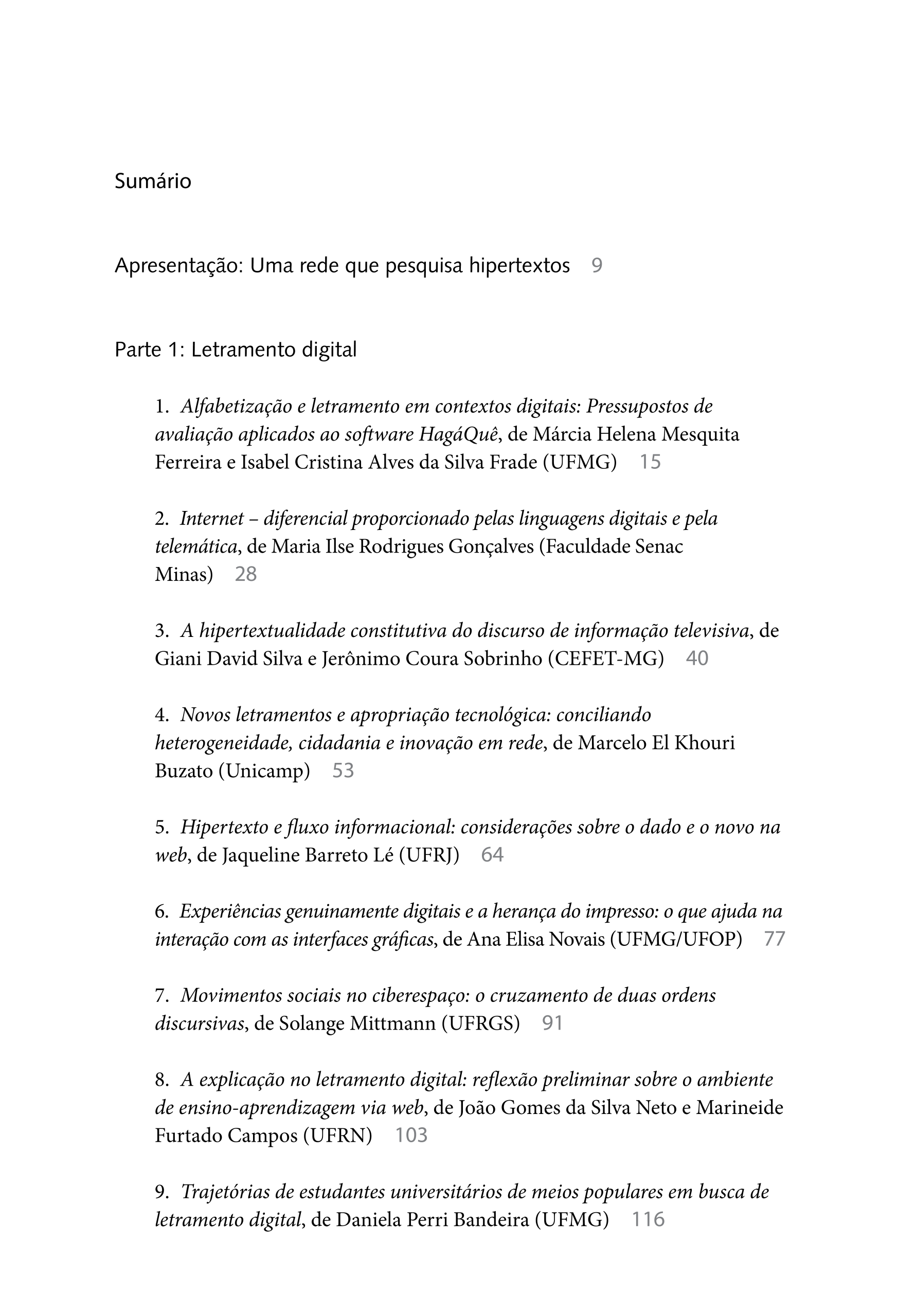 - Organizadores: Ana Elisa Ribeiro, Ana Maria Nápoles Villela, Jerônimo Coura Sobrinho, Rogério Barbosa da Silva