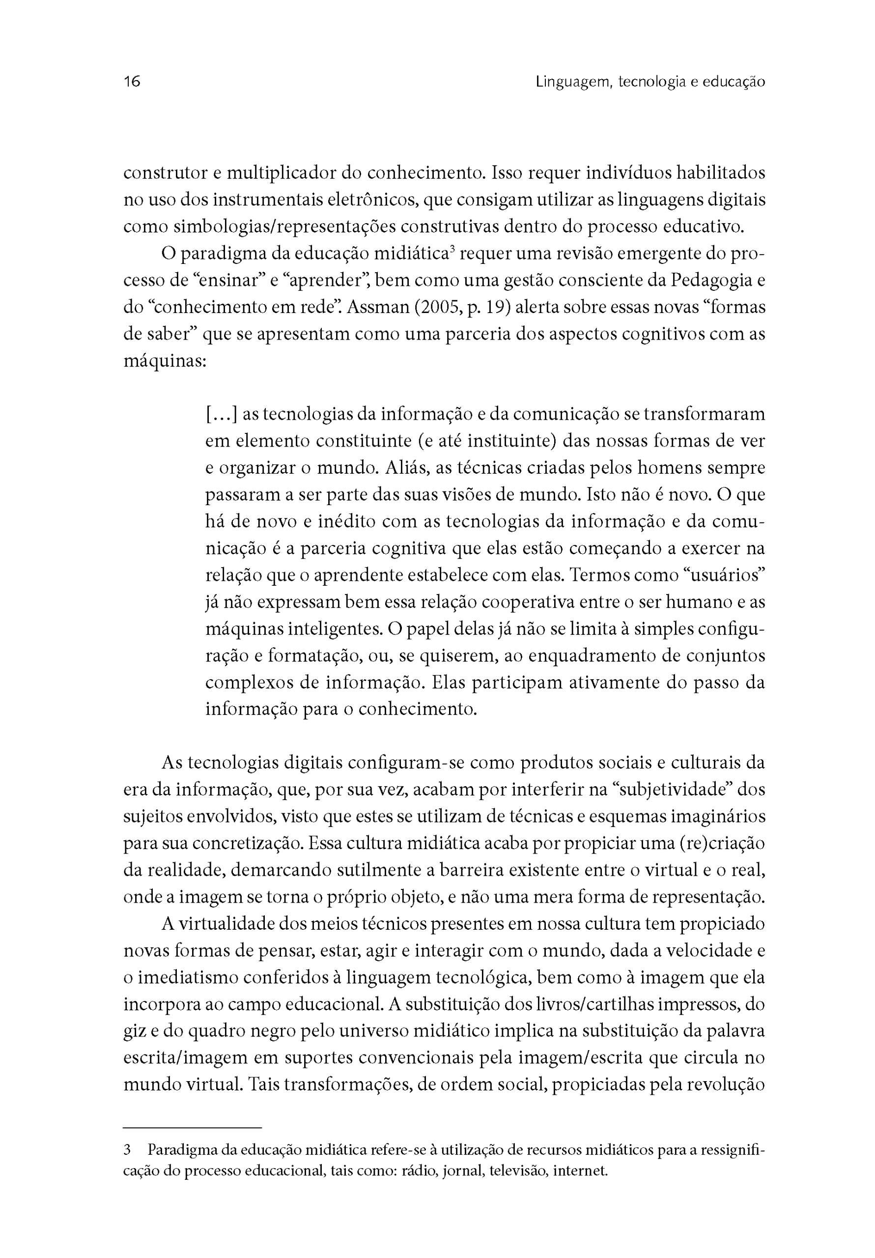 As relações entre linguagem, tecnologias digitais e educação vêm sendo discutidas por pesquisadores em diversos lugares do mundo, inclusive no Brasil. Este livro reúne pesquisas de todas as partes do país, tecendo uma rede que liga esses três temas. Estão em foco no livro o letramento digital de professores, estudantes e grupos sociais; aspectos da hipertextualidade em diferentes mídias; debates sobre gêneros textuais; novas linguagens; e o uso da tecnologia como ferramenta pedagógica.